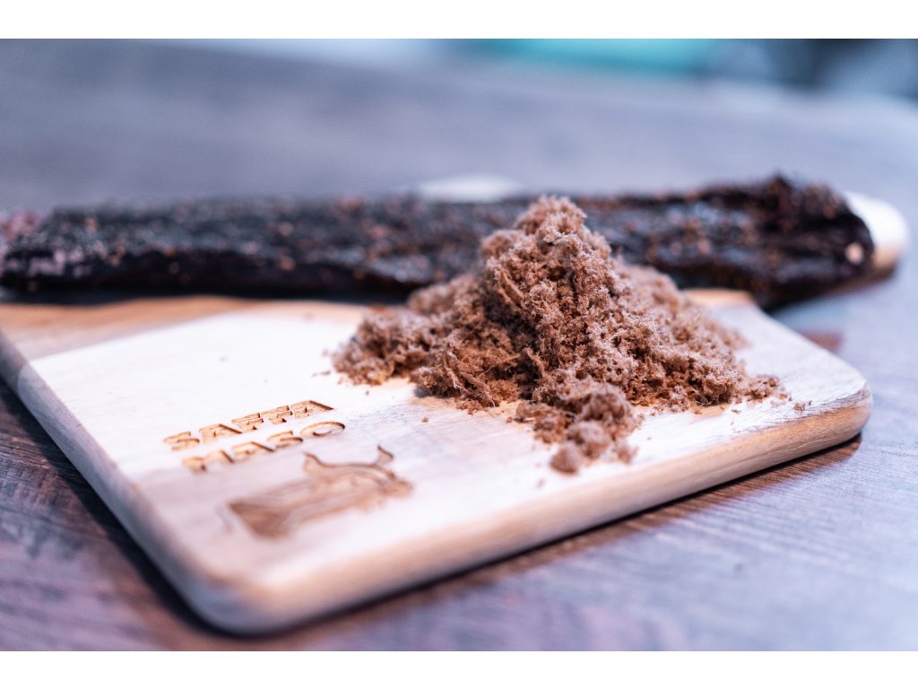 Biltong – sušené hovězí maso, tepelně neopracovaný masný výrobek, namletý po usušení